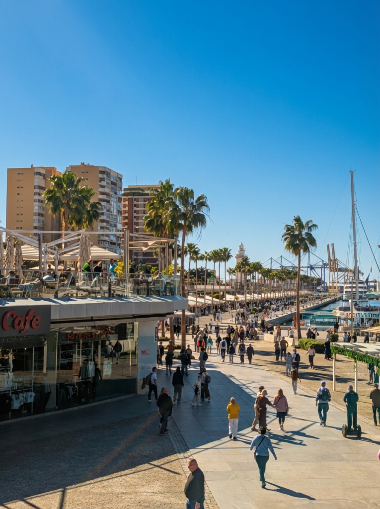 Many afternoons are warm enough to sit outside for lunch, especially in sunlit plazas like Plaza de la Merced or along the harbor promenade at Muelle Uno. Locals still wear coats, but you’ll often notice people lingering at cafés with sunglasses on, enjoying the rare luxury of winter sun.